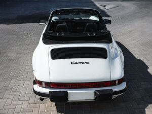 The remarkable 1984 Porsche 911 3.2 Cabriolet featured here is finished in gorgeous Grand Prix White over a Black leather interior with a matching folding convertible top.
