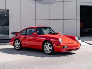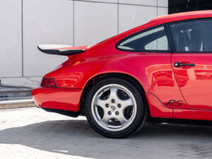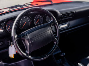 Rare 1993 Porsche 911 RS America driver car without sunroof in Guards Red over Black cloth interior. This RS America came from the factory with 3 of the 4 possible options being Air Conditioning, Limited Slip Differential, and Radio. The car came to us from Colorado Springs Porsche dealership that completed a Porsche Classic Technical Certificate inspection on it.